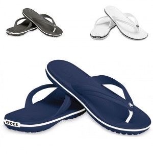 Desportivos e leves, os chinelos coloridos Crocs™ Crocband™ irao condizer perfeitamente com calçoes, calças ou um fato de banho. Preparado para a água, este modelo com sola que nao marca, pesa apenas alguns gramas, sendo ideal para a praia, o jardim... ou qualquer lugar! Ajustado em resina Croslite™ com uma presilha em TPU, proporciona conforto e leveza. Além disso, a palmilha, com pontos que massajam o pé, confere uma sensaçao de bem-estar. Limpeza fácil com água e sabao, secagem rápida.BLACK;NAVY;WHITE;