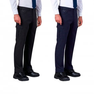 Material muito confortável, suave e flexível. Muitos bolsos. 63% poliéster, 34% viscose, 3% licra. Corte justo, 2 bolsos cargo, 2 bolsos planos na anca, 2 bolsos frontais, botão, fivela para chave em metal.AZUL MARINHO;PRETO;CHARCOAL;
